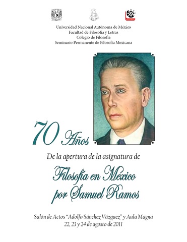 En tiempos en que toda filosofía crítica y humanística es desechada por su supuesta inutilidad y borrada del currículo escolar de la SEP, nosotros en la Facultad de Filosofía y Letras y la Escuela Nacional Preparatoria de la UNAM, conmemoramos su apertura e inclusión, ya desde 1941 por Samuel Ramos y nos proponemos mantenerla como patrimonio social, formativo y educativo, no sólo de los jóvenes estudiosos de esta disciplina, sino de todos los mexicanos. Deberemos para ello tender puentes con la sociedad.
