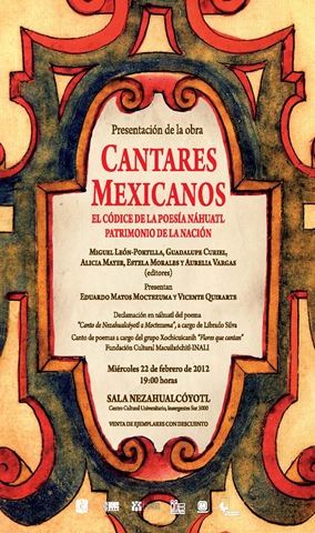El libro Cantares mexicanos, producto de un seminario de historiadores coordinado por Miguel León-Portilla, reúne el corpus literario y filosófico de la antigua tradición indígena náhuatl y ofrece los 86 pliegos con los cantares de la guerra, de primavera, eróticos, entre otros, además de poemas de Nezahualcóyotl.