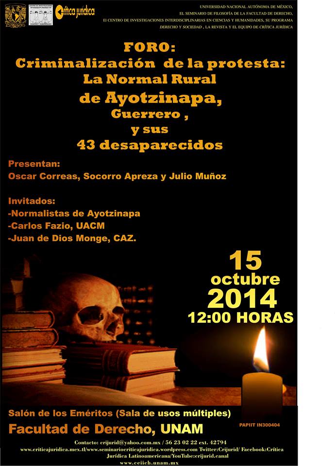 Foro sobre la criminalización de la protesta: La Normal Rural de Ayotzinapa, Guerrero y los 43 estudiantes desaparecidos.