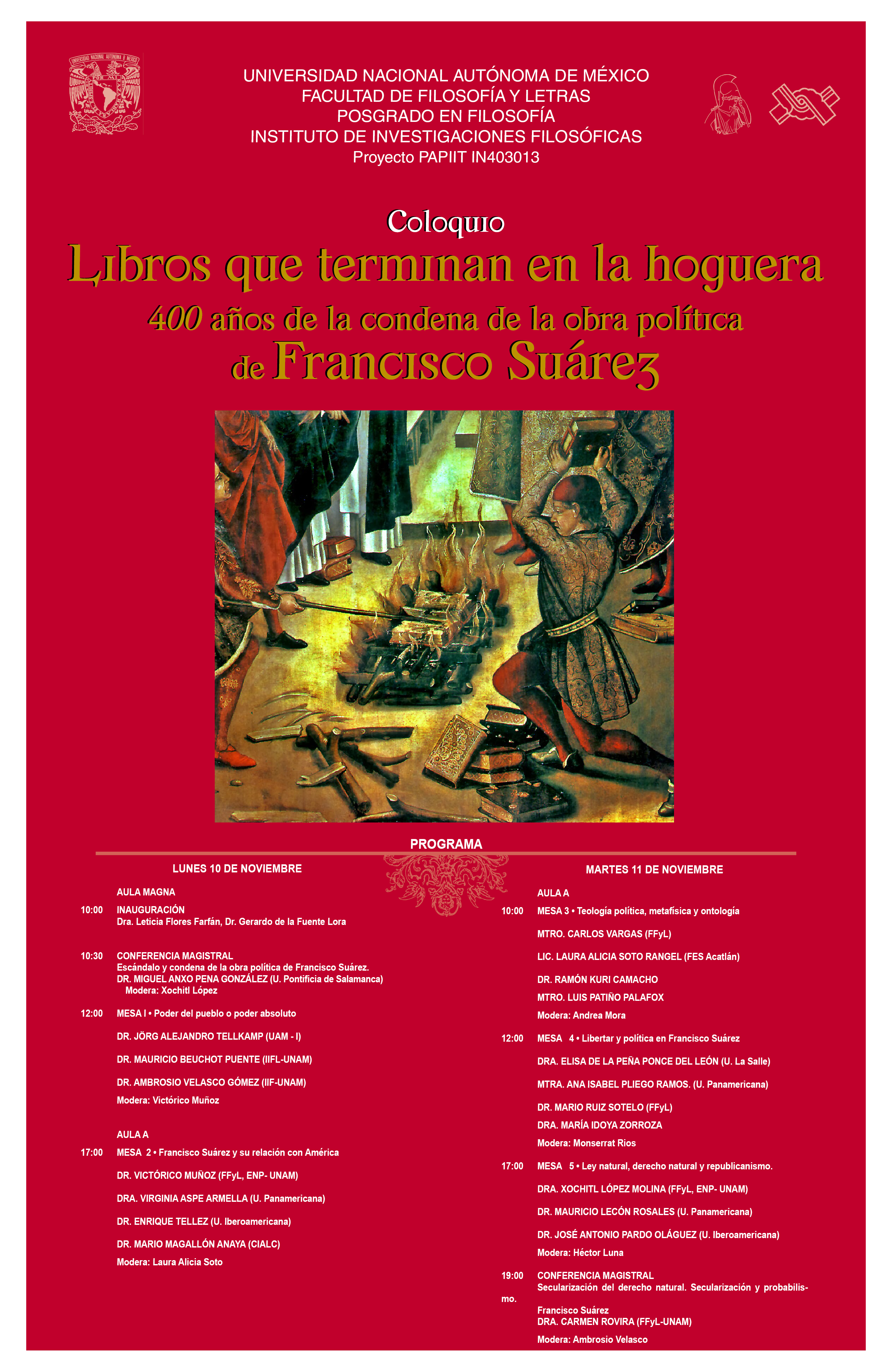 Coloquio «Libros que terminan en la hoguera. 400 años de la condena de la obra política de Francisco Suárez»