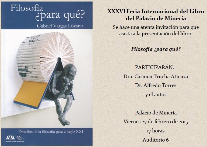 La XXXVI Feria Internacional del Libro del Palacio de Minería nos invitan a la presentación del libro