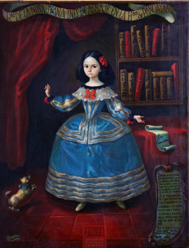 Juana Inés de Asbaje y Ramírez de Santillana nació el 12 de noviembre de 1648 en San Miguel Nepantla, Estado de México.[1] De madre criolla, Isabel Ramírez, y padre español, el capitán Pedro de Asbaje Vargas, Juana Inés tuvo desde niña una fervorosa inquietud por el conocimiento que la llevó a aprender a leer a los tres años y buscar la manera de seguir aprendiendo en cada momento de su vida.