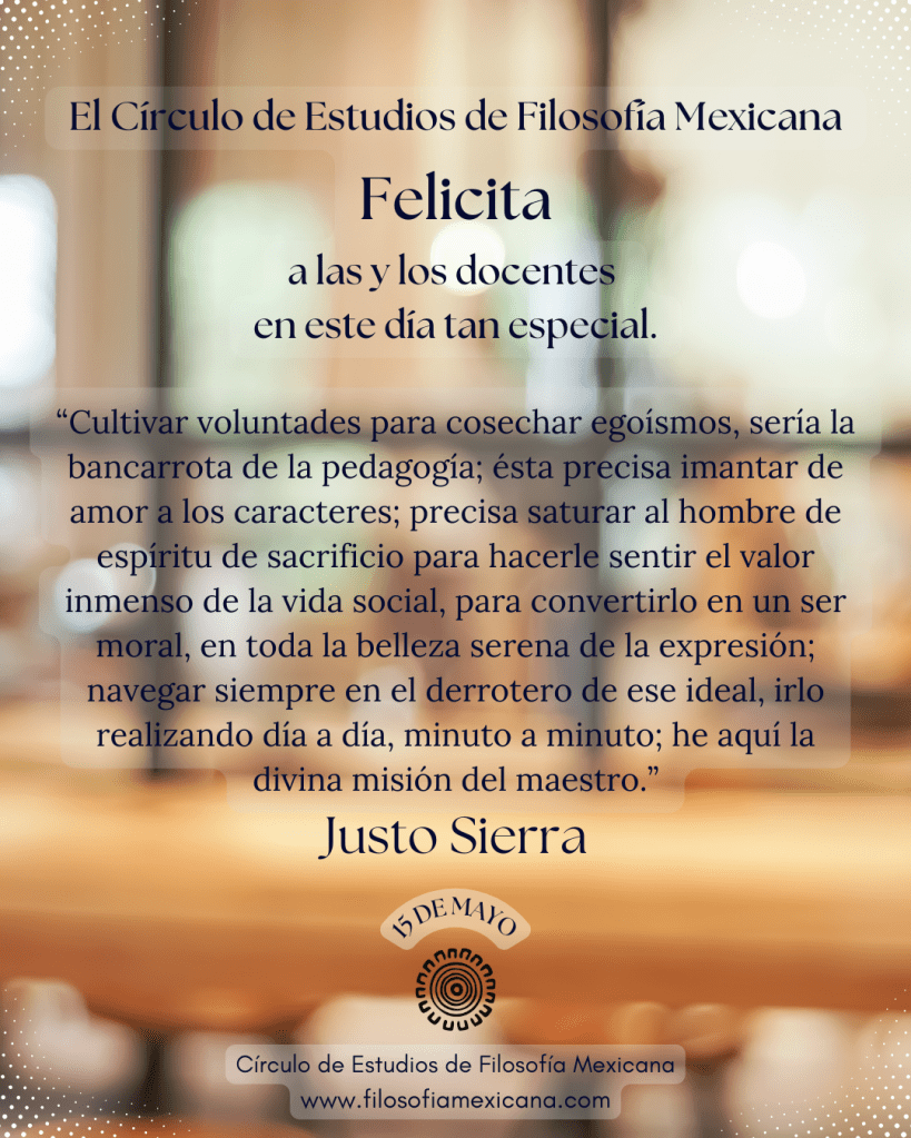 Recomendaciones Felicitaciones a las y los maestros en su día Publicado por CEFIME el 14 mayo, 202518 mayo, 2025 Follow @FilosofiaMexico El Círculo de Estudios de Filosofía Mexicana Felicita A las y los docentes en este día tan especial. Síguenos en nuestras redes: Tu voto:¡Comparte! Haz clic para enviar un enlace por correo electrónico a un amigo (Se abre en una ventana nueva) Correo electrónico Haz clic para imprimir (Se abre en una ventana nueva) Imprimir Haz clic para compartir en Facebook (Se abre en una ventana nueva) Facebook Haz clic para compartir en X (Se abre en una ventana nueva) X Haz clic para compartir en LinkedIn (Se abre en una ventana nueva) LinkedIn Haz clic para compartir en Pinterest (Se abre en una ventana nueva) Pinterest Haz clic para compartir en Tumblr (Se abre en una ventana nueva) Tumblr Haz clic para compartir en Reddit (Se abre en una ventana nueva) Reddit Me gusta Cargando... Relacionado