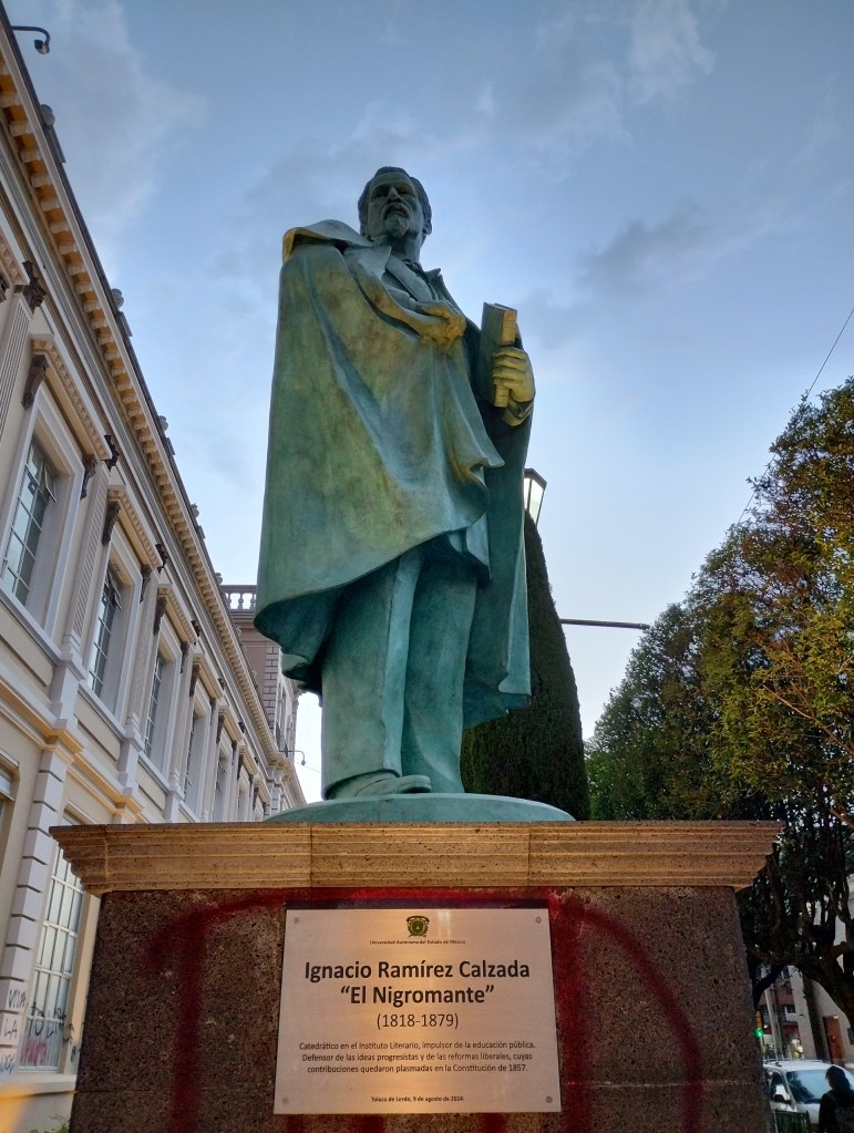 Originario de San Miguel el Grande, Guanajuato, México, Juan Ignacio Paulino Ramírez Calzada el “Nigromante”, nació un 22 de junio de 1818. Educado con las ideas liberales y patrióticas gracias a su padre Don Lino, desde muy joven se formó en la tradición liberal de corte puro. Se trasladó a la Ciudad de México para continuar sus estudios en el Colegio de San Gregorio, teniendo 17 años. En 1836 fue aceptado como socio de número en la Academia de San Juan de Letrán, donde dictó su tesis: “No hay Dios; los seres de la Naturaleza se sostienen por sí mismos”. Se desempeñó como profesor en el Instituto Científico y Literario del Estado de México.