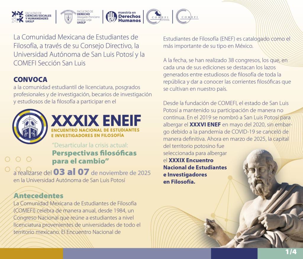 La Comunidad Mexicana de Estudiantes de Filosofía, a través de su Consejo Directivo, la Universidad Autónoma de San Luis Potosí y la COMEFI Sección San Luis