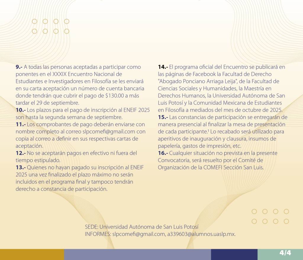 Informes: slpcomefi@gmail.com, a339603@alumnos.uaslp.mx