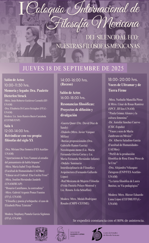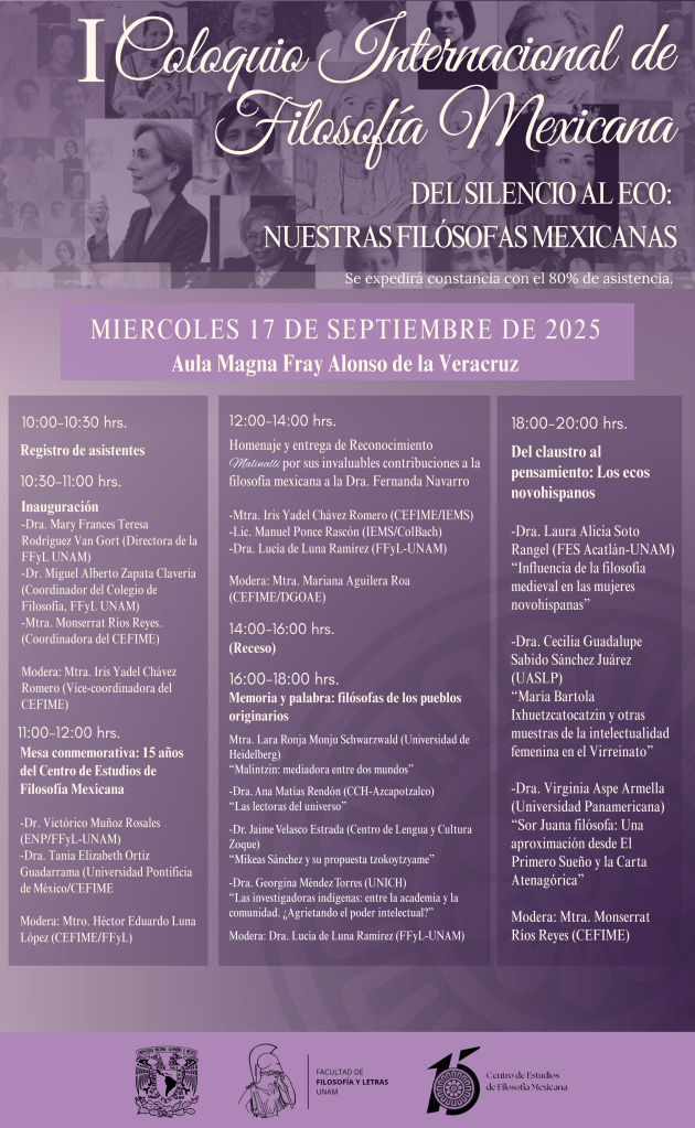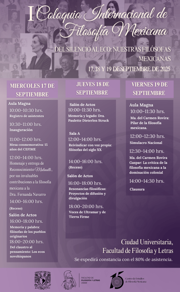 Lugar: Aula Magna & Salón de Actos de la Facultad de Filosofía y Letras de la UNAM