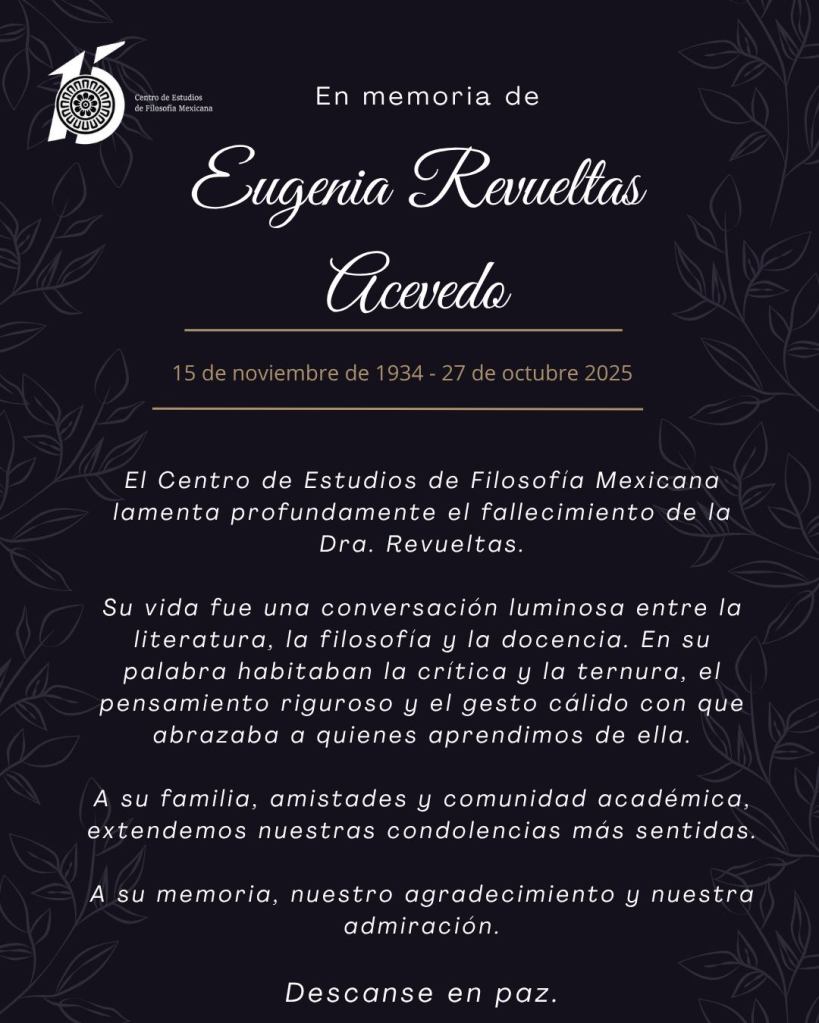 El Centro de Estudios de Filosofía Mexicana lamenta el sensible fallecimiento de la doctora