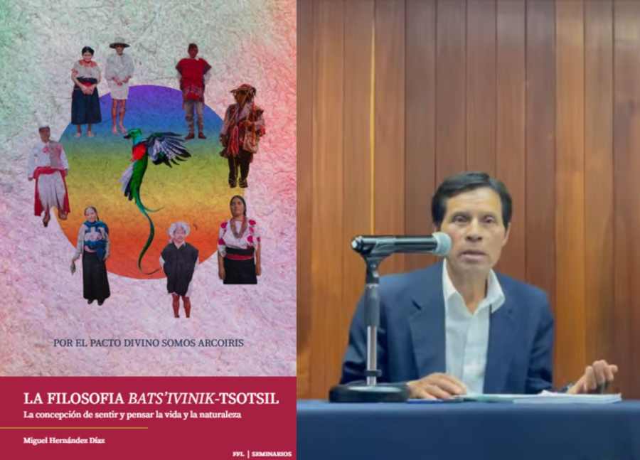 Hernández Díaz, quien tiene un posdoctorado en Antropología Social en la Escuela Nacional de Antropología e Historia, expuso que el libro propone un canon en el pensamiento filosófico bats’ivinik, que inicia con el sentir y pensar de cualquier imagen de la naturaleza; comienza con la emoción de la sensibilidad, que armoniza el actuar de la vida. “Este sentimiento de sentir y pensar surge en el o’on” (corazón), un atributo fundamental que no alude al órgano físico, sino al corazón del alma (espíritu)”.